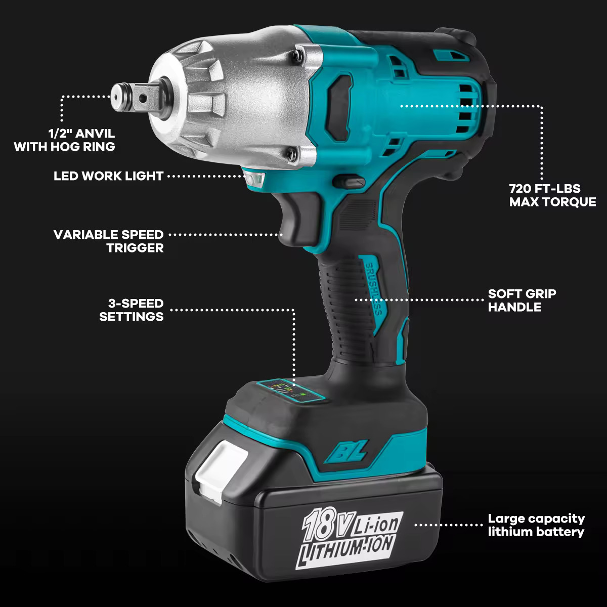 500Nm Electric Torque Wrench 18v Lithium Battery Wrench Multifunctional Wrench Brushless Dc Brushless Motor Price:$30.00